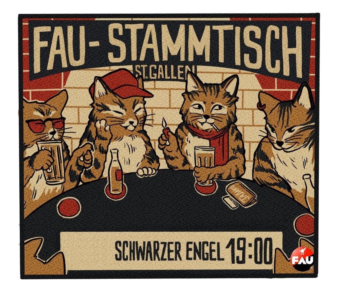 Der FAU-Stammtisch in St. Gallen findet jeden 1. Montag im Monat im Schwarzen Engel statt.